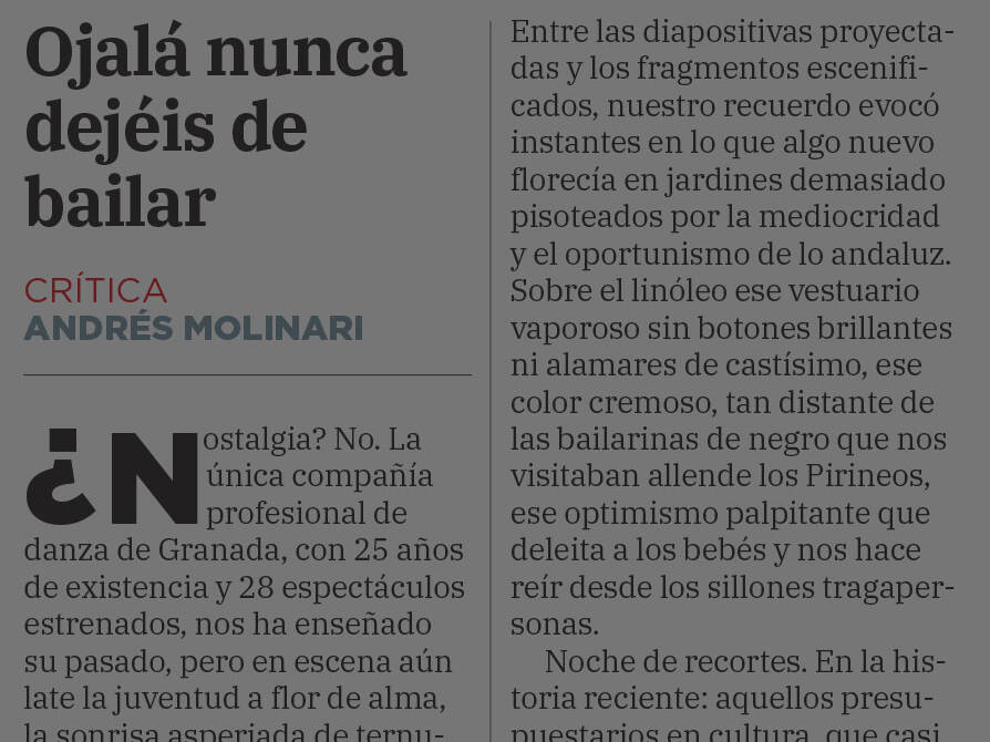 Hide filtersShow filters Clear allnoviembre 2024 × Close Uncategorized 28 noviembre, 2024El Silencio de los Cuerpos en el marco de las Jornadas de Adolescencia de la FGUMAby Admin Uncategorized 27 noviembre, 2024Participación en las III Jornadas de Investigación en Danza del CSDD Ángel Pericet de Málagaby Admin Uncategorized 19 noviembre, 2024Participación en el Fest. Int. elPetit 2024by Admin Uncategorized 14 noviembre, 2024Ojalá nunca dejéis de bailar por Andrés Molinari – XXV Aniversarioby Admin Uncategorized 9 noviembre, 2024Bodas de plata con el escenario, por José Antonio Muñozby Admin Uncategorized 8 noviembre, 2024Primeras funciones escolares en el Teatro Alhambra / XXV Aniversarioby Admin Uncategorized 6 noviembre, 2024Conferencia «Bioneurosincronía» pon a bailar tu cerebro / XXV Aniversarioby Admin Uncategorized 1 noviembre, 2024DA.TE Danza se convierte en compañía residente del municipio de Armillaby Admin Contact the publishershello@yourwebsite.com +(646) 245 234 98 ExplorateAbout Partners Job opportunities Advertise Membership Privacy Policy Contact Headquarter191 Middleville Road, NY 10001, New York United States Connections
