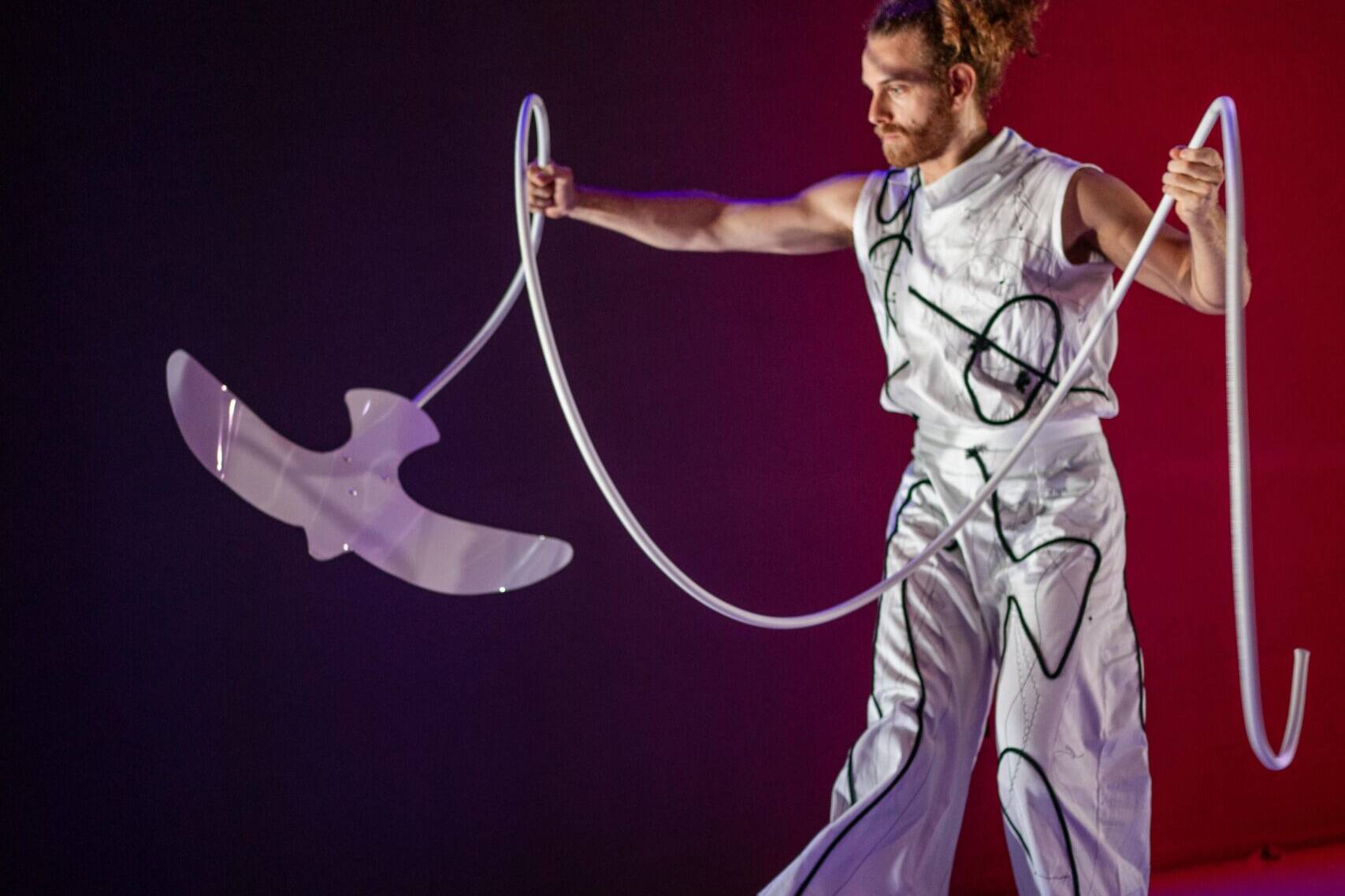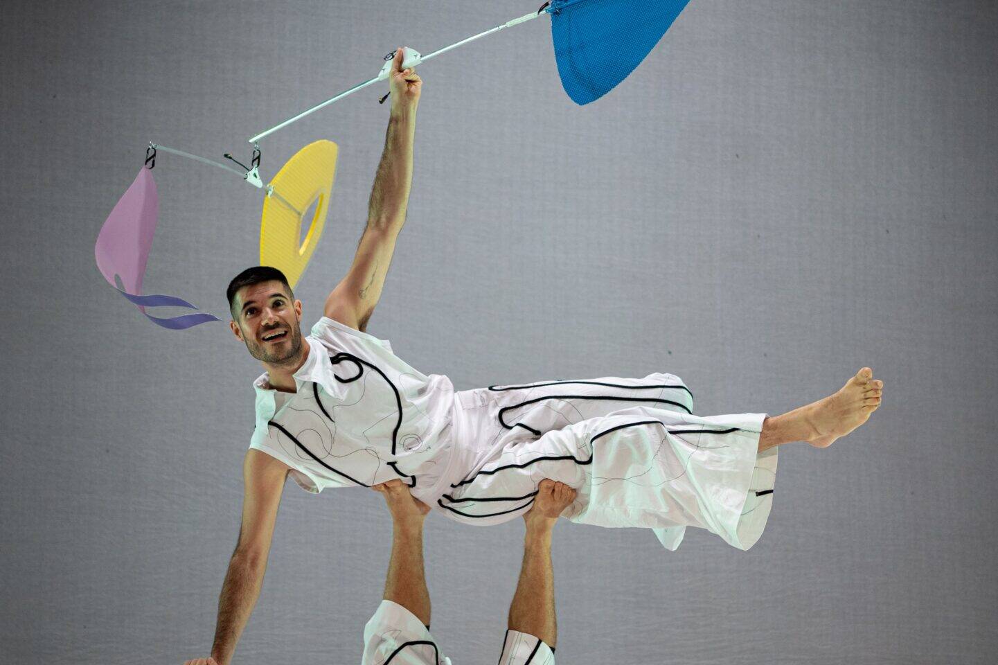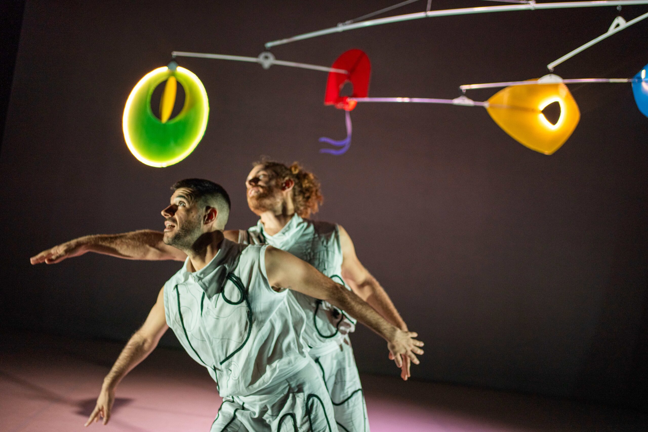 La pieza se inspira en el pensamiento móvil de Alexander Calder, en esa forma de existir que se adapta al aire sin perder su centro. En diálogo con el universo de Calder, Únicos se transforma con cada encuentro. Nada permanece fijo: los cuerpos, el espacio, el tiempo… todo se transforma, buscando ese instante en que la identidad y la belleza se unen.