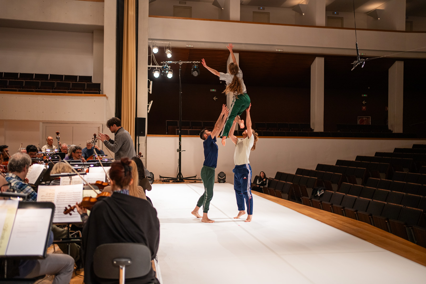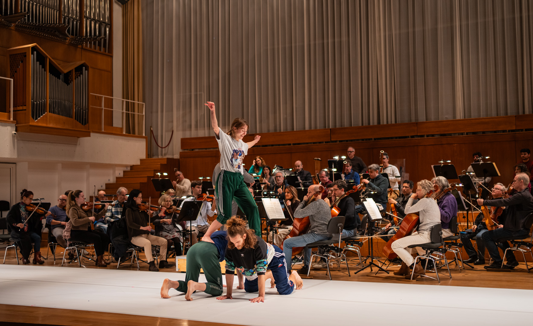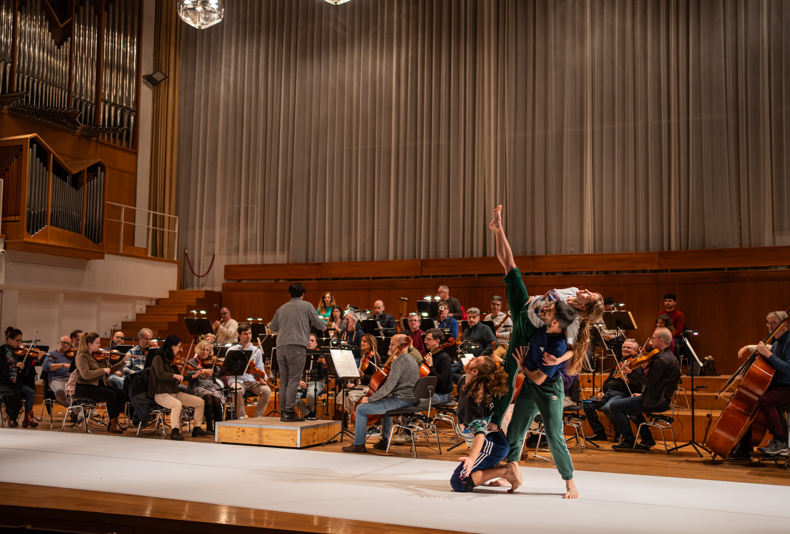 DA.TE Danza y la Orquesta Ciudad de Granada estrenan su nuevo proyecto pedagógico tras el ensayo general. La propuesta se ha presentado ante público escolar en el marco de conciertos didácticos.